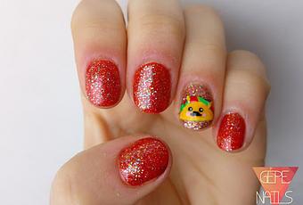 Y si a esta preciosidad, le añadimos un maravilloso glitter encima ( 09 Copper'ize me! ,de Essence), es una maravilla. El glitter es fantástico. Además, a mi me da la sensación como que el taco es picante, ¿verdad? Quizás es el naranja de las uñas, que parece la salsa Tabasco pero para mi, tiene la manicura un aspecto como que pica jaja