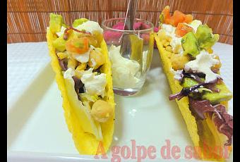 Ingredientes para los Tacos con garbanzos y aguacate bañados de nata agria (4 personas):- 8 tortillas de maíz o tacos
