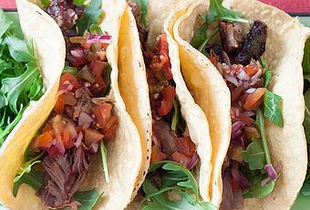 Pero yo que no desisto, doy con la receta facilonga y sencillina que sospecho vamos a preparar la mitad de los que jugamos a esto de copietear chefs: unos tacos sencillotes y sabrosos.