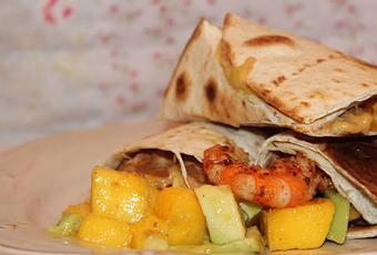 A mí en verano, como ya veis por las recetas que cuelgo me gusta combinar la fruta con todo, jejeje... meterla hasta en la sopa!! La verdad es que con las tropecientas opciones que tenemos estos días es una pena no poder emplearnos a fondo con todas ellas, jejeje... así que yo las meto en todas la recetas que puedo, como en esta... además, combinadas con los langostinos especiados quedan muy ricas...una combinación fresca pero apetitosa, sí.