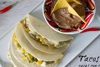 Las rajas con crema es una receta deliciosa. Si bien en España se me complica conseguir chiles poblanos, me las apaño con los pimientos verdes carnosos. Esta receta puede servirse en tortillas de maíz o de harina o usarla de acompañamiento para carnes, pescados, arroz, etc.