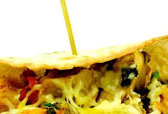 4 tortillas de harina de trigo 1 pechuga de pollo 1 cebollino 1/2 tomate 75 gramos de champiñones