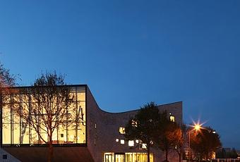 Un gesto inclusivo hacia la ciudad en uno de los lados mayores propone el lugar de acceso. El vestíbulo esta coronado por un techo curvo con una serie de lumbreras que permiten visualizar las actividades que se desarrollan en los pisos superiores. Estas plantas están diseñadas como terrazas que serpentean a la manera de una cinta blanca.