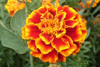 Tagetes popularmente conocido como flor de estudiantes, caléndula enano, clavel francés, rosa y amarillo planta de clavel India nativa de México, herbáceas, hojas verde oscuro con un olor fuerte y flores en los capítulos de colores, más bi-colores amarillo brillante y rojo oscuro.