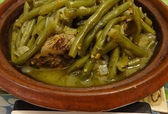 650 g de viande de bœuf, 400 g de haricots verts, 1 tomate moyenne, 1 oignon moyen, 4 gousses d’ail, 250 ml d'eau, 3 cuillères à soupe d’huile d'olive. Coriandre (ou persil), sel, poivre, paprika, curcuma et gingembre (les épices, au goût)********************************