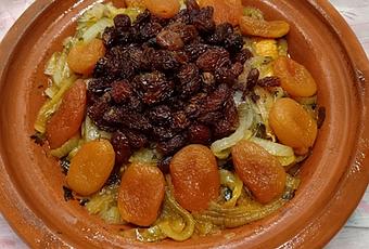 طاجينالدجاج بالمشمش المجفف والزبيب