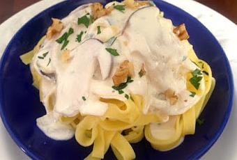 - 500 gr. de tagliatelle,- 4 ó 5 ceps ( unos 600 gr. aproximadamente) - 500 gr. crema de leche o nata para cocinar- 3 dientes de ajo- 1 cebolleta- 25 gr. de mantequilla- Aceite.- Perejil. Nueces