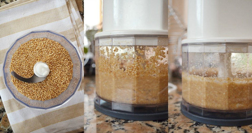 Tahini (pasta de sésamo), paso a pasoPreparación: 10 minutosCocción: 5 minutosRaciones: Unos 200 gramos aproximadamenteIngredientes200 gramos de semillas de sésamo, también conocido como "ajónjoli"50 gramos de aceite de girasolSalElaboraciónTostamos ligeramente las semillas de sésamo para que pasen de un color "pálido" a un color dorado, pero sin quemarse. Una vez tostadas las vertemos en nuestra trituradora junto con los 50 gramos de aceite de girasol y una pizca de sal. Trituramos a velocidad fuerte. Debemos triturarlas cuando las semillas aún estén calientes para facilitar que suelten su aceite natural. Trituramos durante unos minutos bajando las semillas que se queden en las paredes de la trituradora.