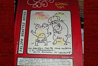Va la crónica publicada en el Diario.Bajo el sugerente título de Tahumoraquia, el grupo de empresas San Marcos, propiedad de Antonio Sánchez Aguilera, ha patrocinado la publicación de una colección de cuentos que tienen el humor y los toros como denominador común. Todo con un fin solidario. El libro, que fue presentado en las dependencias municipales del Centro de Congresos en la noche del pasado martes, sale a la calle con una doble vocación: de un lado, divertir con su lectura a todo aquel que se aventure en sus páginas; de otro, recaudar fondos en beneficio del albergue Federico Ozanam de San Vicente de Paúl. De coordinar la edición de esta antología de cuentos que, a modo de homenaje, se dedica a Felipe Benítez Reyes, se ha encargado el autor isleño Rafael Duarte. Y mérito suyo ha sido reunir a un variado grupo de narradores, entre los que se encuentran Ángel Luis Castro Haro, Manuel Cubero Urbano, José María Deira García, Francisco Orgambides Gómez, Francisco Domínguez Guerrero, Manuel Jesús Feria Aliaga, Pedro María González Tuero, José Luis Traverso González, Enrique Alcina Echevarría, José Chamorro López, Gustavo Postigo Briz y Gustavo Postigo Santamaría, además del propio Felipe Benítez Reyes. La presentación que se llevó a cabo en el Centro de Congresos consiguió reunir a un numeroso público. Fue el concejal Manuel Prado el que, junto al empresario Antonio Sánchez Aguilera y a Rafael Duarte, se encargaron de dar a conocer la antología Tahumoraquia. El alcalde, Manuel de Bernardo, cerró el acto. A modo de presentación del libro se procedió a la lectura del cuento de Benítez Reyes, que sin embargo excusó su asistencia al acto al asistir a la entrega de un premio literario en Sevilla. Duarte, por su parte, leyó un poema de su cosecha que dedicó a todos los autores que habían participado en la publicación. Asistieron también a la presentación varios de los autores que con sus cuentos colaboran en la publicación, quienes incluso firmaron algunos ejemplares al terminar el acto. Y amenizaron la velada el grupo musical Hagamos ruido y el grupo teatral puertorrealeño De ida y vuelta.