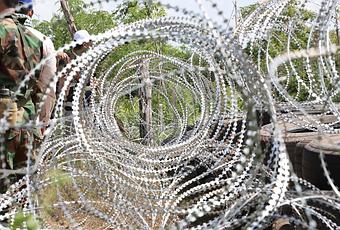 CAMBODIA BANTEAY MEANCHEY THAILAND BORDER BARBED WIRE & TYRES