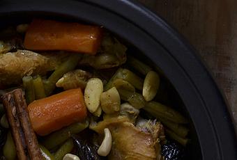 Hay pocos placeres tan suculentos y deliciosos como el destapar un tajine y recibir de golpe todos los maravillosos aromas que desprenden las especias cocinadas a fuego lento durante un par de horas. No sé a vosotros, pero a mi me encanta tener la cocina y la mesa inundada de exóticos aromas y sabrosos sabores. Hoy os traigo una receta muy fácil de preparar, un tajine elaborado con pollo, verduras y el toque que le aportan las almendras tostadas. En el último mes lo he preparado varias veces y seguro que no tardaré en volver a cocinarlo.