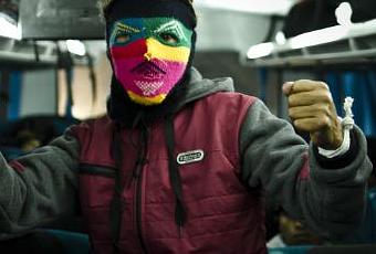 Si hay algo que llama nuestra atención son los animales disecados acomodados sobre las cabezas de quienes van a limpiar su honor al Takanakuy. Estos cumplen un rol fundamental en tanto distinguen a los luchadores en términos de jerarquía social y fuerza. Así lo recuerda el fotógrafo: “Cuando estaba en camino, faltando una hora para llegar a Santoto subió un pasajero al micro y se sentó a mi costado. Después de un rato veo que lleva, en la mano, la parte superior de la cabeza de un venado. Era hueca como un casco. Nos miramos y le pregunté si era su casco, y él con una dulce y ebria sonrisa responde un orgulloso sí. A los tres minutos yo alistaba la cámara mientras él se ponía su máscara y ‘casco’. Una vez listo se paró frente a mí y se puso en guardia mostrándome los puños. Un minuto después, los pasajeros del micro le gritaban: ¡Pégale! ¡Pégale! Esa fue mi primera foto.”