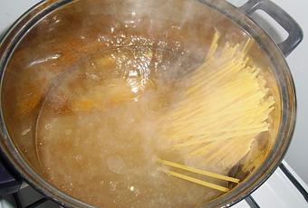 Anteriormente hemos sacado los tallarines del agua y escurridos complétamente