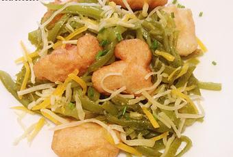 En el reto Alfabeto salado se propuso combinar e un plato las judías verdes con marisco, una combinación muy característica y rica, pero al hacer los langostinos en una tempura muy original y jugosa se gana mucho en sabor.