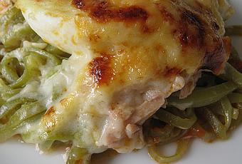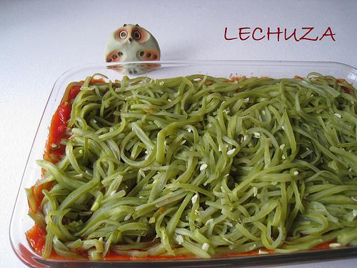 TALLARINES DE JUDIAS VERDES GRATINADAS CON QUESO