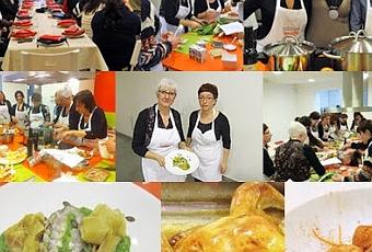 Eramos unos cuantos, 16, todos bloguers algunos que no conocía y me alegro de haberlo hecho, y aparte de las indicaciones (de las que tomé buena nota y he puesto en práctica) realizamos entre todo el grupo cinco recetas, no es necesario decir que nos lo pasamos genial.