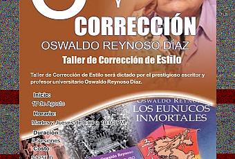 Un taller de Corrección y Estilo será dictado por el prestigioso escritor y profesor universitario Oswaldo Reynoso Díaz del 17 de agosto al 9 de setiembre próximo, durante 8 sesiones, los días martes y jueves de 8 a 10 PM.