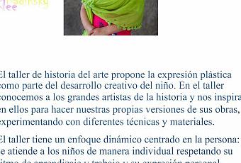En él los niños se acercan de manera lúdica a los grandes artistas de la historia, conocen un poco de su vida y su obra y se inspiran en ellos para hacer versiones de sus cuadros más famosos.