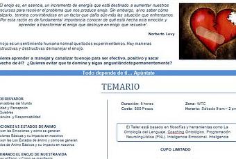 ¿Quieres aprender a manejar y canalizar tu enojo para ser efectivo, positivo y sacar provecho de él? ¿Quieres evitar que te domine y sigas angustiándote permanentemente? Todo depende de ti… Apúntate .