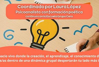 Descubre al/la poeta que hay en ti, a través del trabajo grupal, la lectura de grandes autores/as y tareas semanales que se publicarán en un blog conjunto. Un espacio de intercambio y producción, coordinado por Laura López, psicoanalista, poeta, integrante de los talleres de Poesía Grupo Cero y autora de tres poemarios publicados.