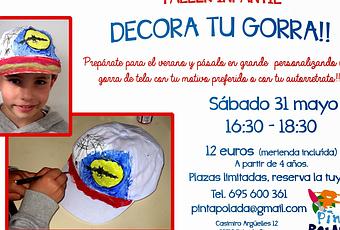 El taller infantil “Decora tu gorra” será de 16:30 – 18:30 y tendrá un precio de 12 euros (material y merienda incluída)