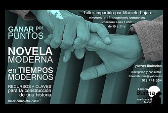 El próximo lunes 1 de abril comenzará en la librería Burma de Madrid (c/ Ave María 18), el taller 'Novela moderna en tiempos modernos. Recursos y claves para la construcción de una historia' impartido por el escritor Marcelo Luján.Se trata de un curso trimestral que se imparte los lunes de 19 a 21 horas.
