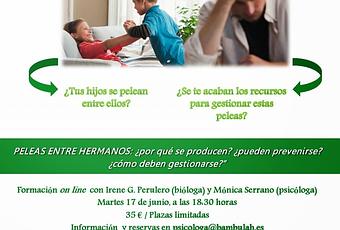 En este Taller nos van a dar las herramientas necesarias para prevenir, comprender y resolver pacíficamente las peleas entre nuestros hijos, las típicas peleas entre hermanos que pueden desquiciar a cualquiera.