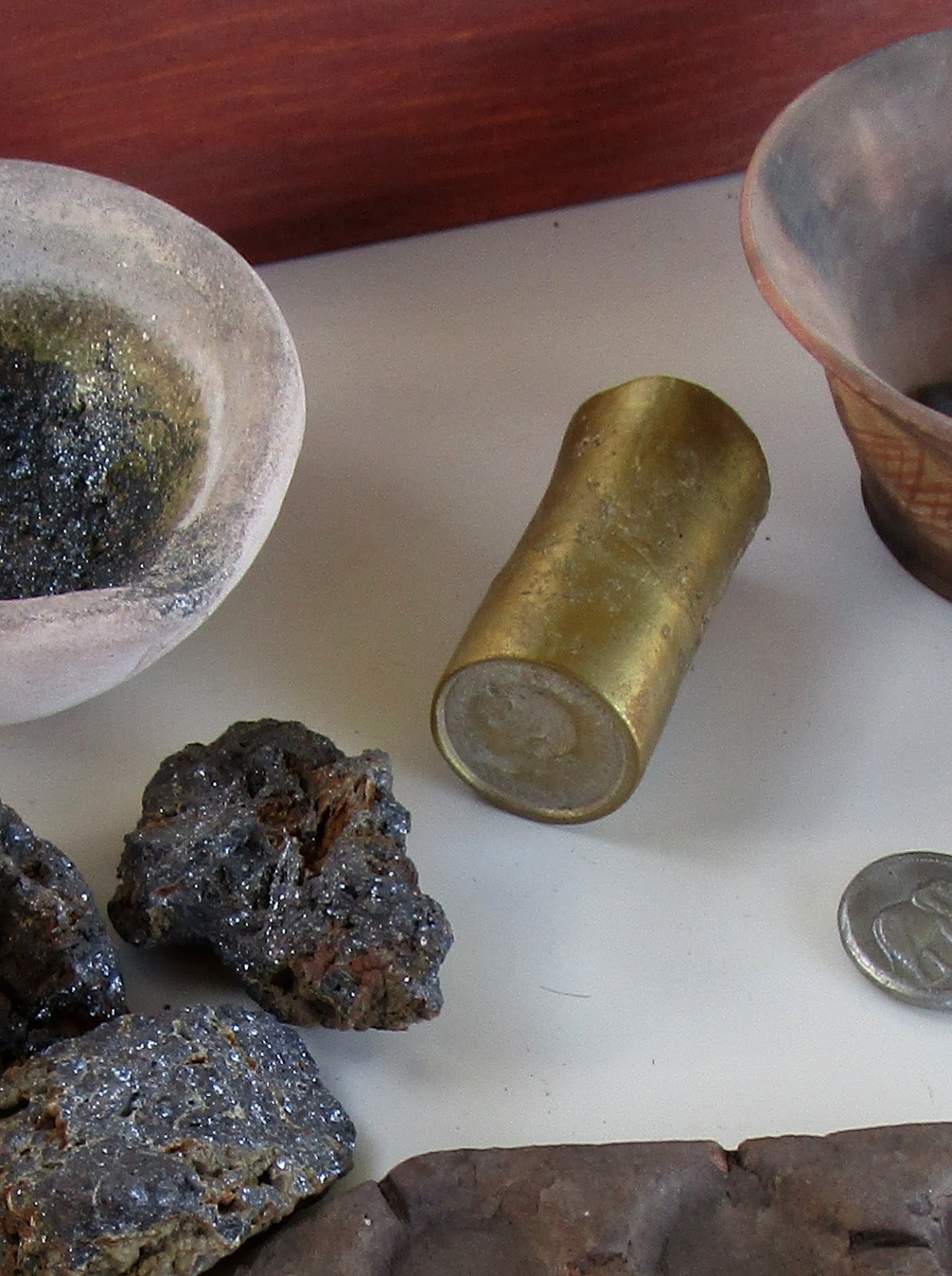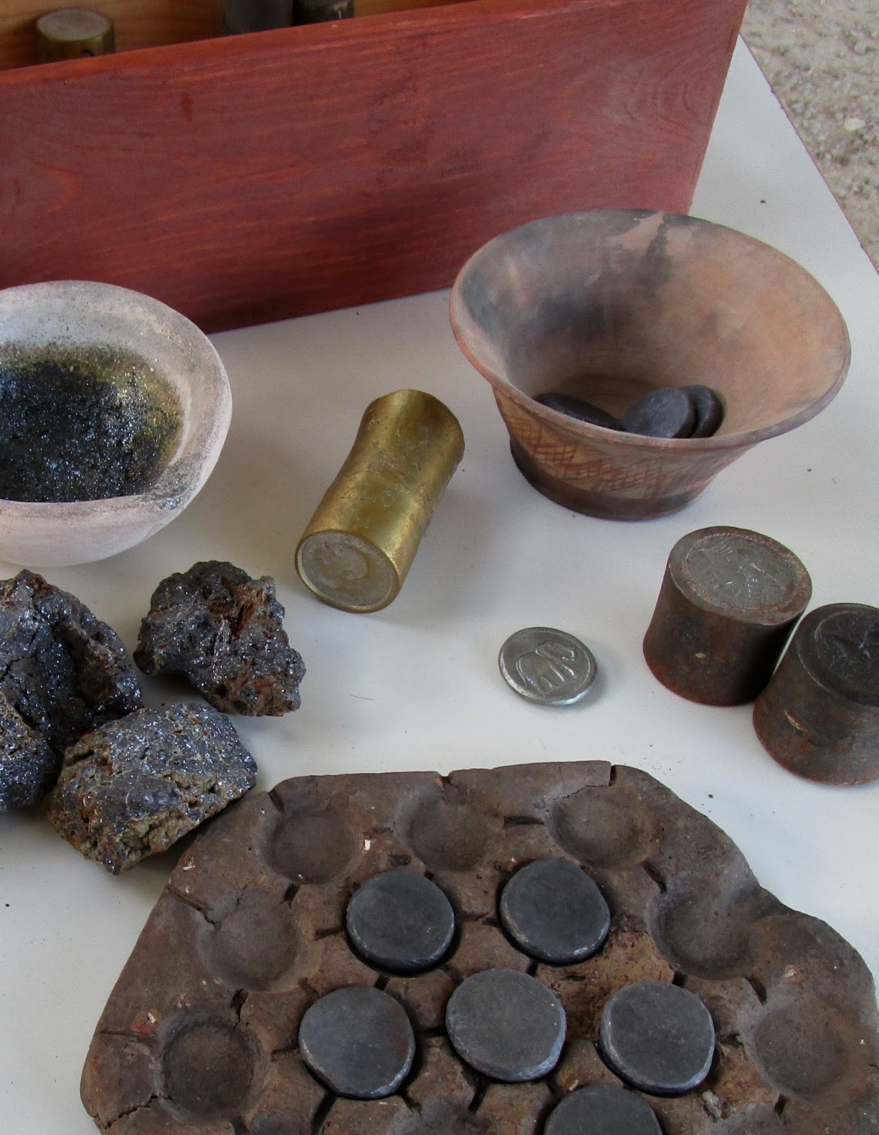 Materiales del taller de acuñación, que incluyó explicaciones de todo el proceso desde la obtención del metal a partir de las menas minerales.