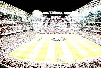«Hacia el fondo Sur». Foto del estadio Santiago Bernabéu, editada.