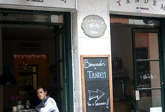 Dicen que no hay dos sin tres pero en el caso del restaurante Tandem, la cosa va al revés. Del exitoso Triciclo, con sus tres ruedas y sus tres cocineros, ha nacido el biplaza Tandem, de los mismos propietarios, orientado a dar de comer a cualquier hora. Mientras que el restaurante Triciclo mantiene un horario más tradicional de comidas y cenas, en Tandem se puede desayunar, comer, merendar, cenar y hasta hacer brunch. Su carta sencilla y versátil aplica a toda las horas del día, manteniendo el principio de la calidad de la materia prima y las propuestas originales.