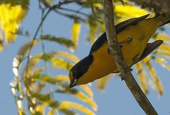 Si bien tengo mejores fotos que las que voy a compartir hoy del Tangará amarillo hacía bastante tiempo que yo no podía disfrutar de un encuentro con ese pequeñín. El horario del registro no era el ideal para fotografiar aves ya que estábamos recorriendo con Nicolás Pavese el sendero verde del Parque Nacional Iguazú en plena siesta. Por primera vez en varios años pude disfrutar de un poco de silencio en el lugar porque solamente nos cruzamos con dos personas mientras realizamos este recorrido y la tranquilidad ayudó un poco para que en este horario inadecuado para la actividad se pueda registrar algo. Llegando casi al final del sendero (antes de las vías del tren) una pareja de este Tangará posó para la foto, solamente el macho se acercó un poco mas al suelo permitiéndome obtener estas dos fotografías para compartir con ustedes.