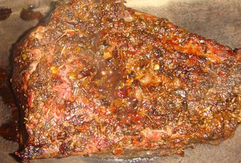 - Ahora colocamos el corte de carne en una fuente para horno y untamos generosamente con el chimichurri preparado.