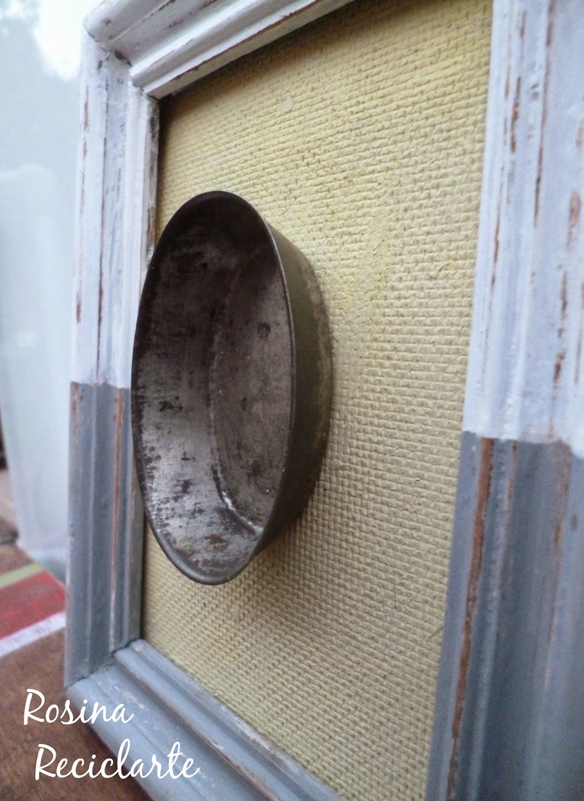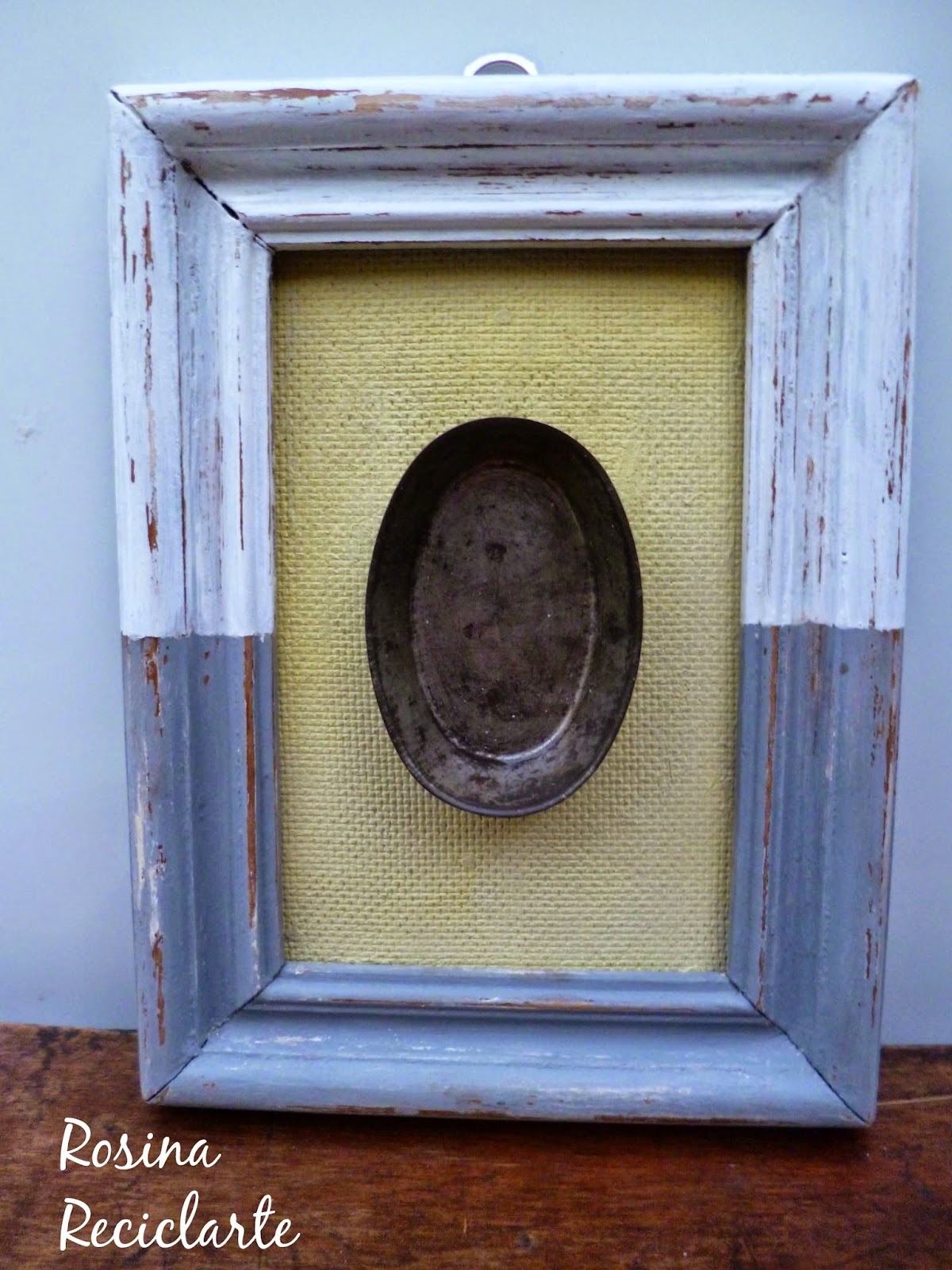 Un par de porta retratos viejos Otro de moldes amoroso Colores pastel Silicona fría Y hasta dos anillas de latas de paté para colgarlos