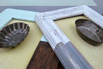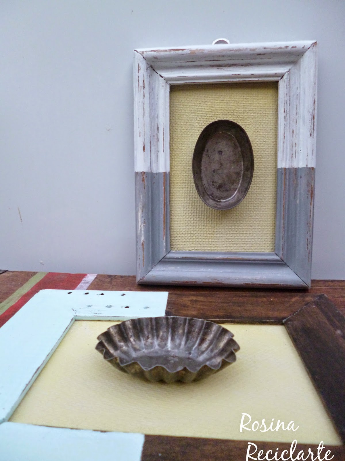 Entonces les di un nuevo look a dos porta retratos viejos en tonos pastel tan de moda por estos días en la decoración, y para seguir con la onda utensilio les pegué un par de moldecitos antiguos que adoro y atesoro hace tiempo.