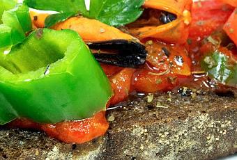 Paso 4. Tostamos ligeramente una rebanada de pan negro y sobre ella añadimos la salsa que hemos preparado y dos o tres mejillones sin cascara por cada tapa. Añadimos una o dos hojas de perejil fresco y ya tenemos listas nuestras tapas de mejillones.¿Qué os parece el resultado? Una receta original, sana y con un colorido especial. Esperamos que estas curiosas tapas de mejillones os hayan gustado.