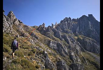 La subida por esta empinadísima ladera caliza (La Caliarona) es fácil de subir, salvo el tremendo desnivel que hemos de afrontar, por ello compensa de vez en cuando hacer un descanso y disfrutar de las vistas.