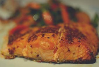 A continuación he maridado dos lomos de salmón con el jugo de una lima, una cucharada de mostaza antigua, tres cucharadas de soja, pizca de ras al hanout y un poco de jengibre en polvo. Por otro lado he rallado un tomate junto un chorrito de aceite y sal negra al gusto. He dejado apartado. Seguidamente he pelado unos gajos de dos mandarinas, rallada una zanahoria, las cuales he puesto en un ensaladera junto con un mix de berros y rúcula, cilantro y cebolla frita en cantidades para dos personas.