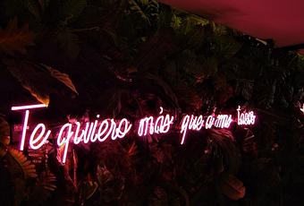 El lugar tiene dos secciones, y en medio de estas tienen un letrero neón que seguro al finalizar tu experiencia ¡Vas a querer tomar una foto!