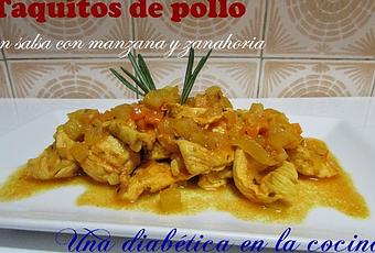 - Terminado este proceso añadimos los tacos de pollo que habremos salpimentado y los sellaremos con los anteriores ingredientes.