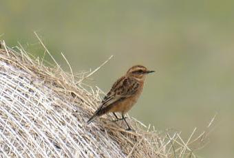 Suelen buscar todos los posaderos disponibles para estar al acecho y caza de todos los invertebrados que pasen a su alcance. Las que localicé hoy aprovechaban por ejemplo los fardos de yerba cortada que estos días de agosto y septiembre se encuentran por toda la campiña gozoniega.