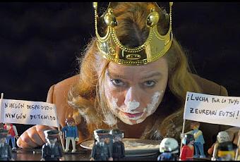 La música en directo de la violeonchelista Ana Ispizua acompaña en todo momento a Insa, absoluta protagonista que se desdobla en múltiples personajes. Interpreta a la actriz, al rey emérito, a una bailarina en los Pactos de La Moncloa, a Billy el Niño, a Yolanda González, a uno de los manifestantes en la masacre de Gasteiz... “Ha salido un personaje muy divertido, con un humor bastante blanco, un poco incisivo e irreverente y en un momento muy cómico de la obra que pide a cada español un euro para ir y volver de Abu Dabi y para hacer sus cosas, porque se ha arruinado. No sabe por qué no le llega allí la pensión y piensa que hay problemas con la transferencia de la Seguridad Social...”