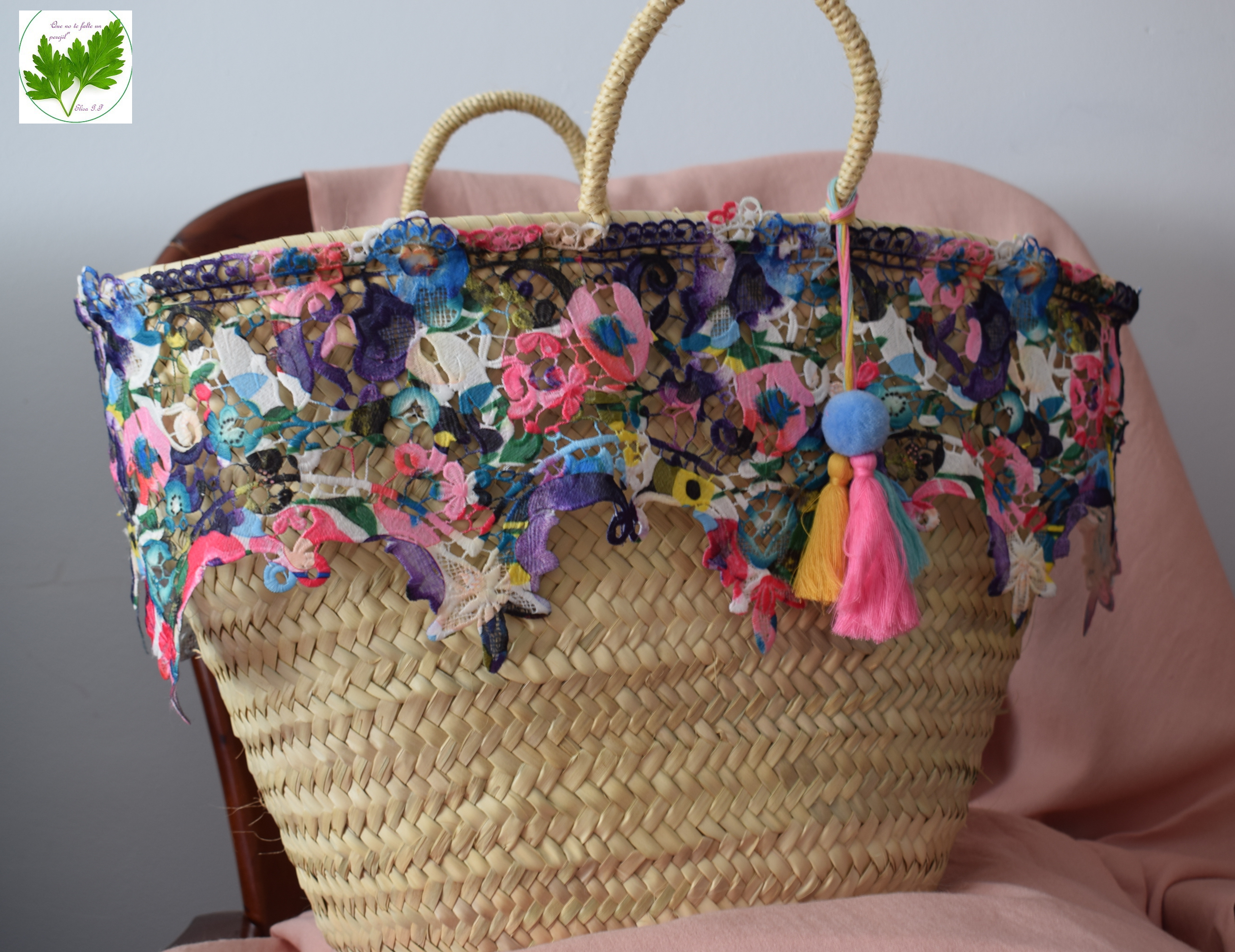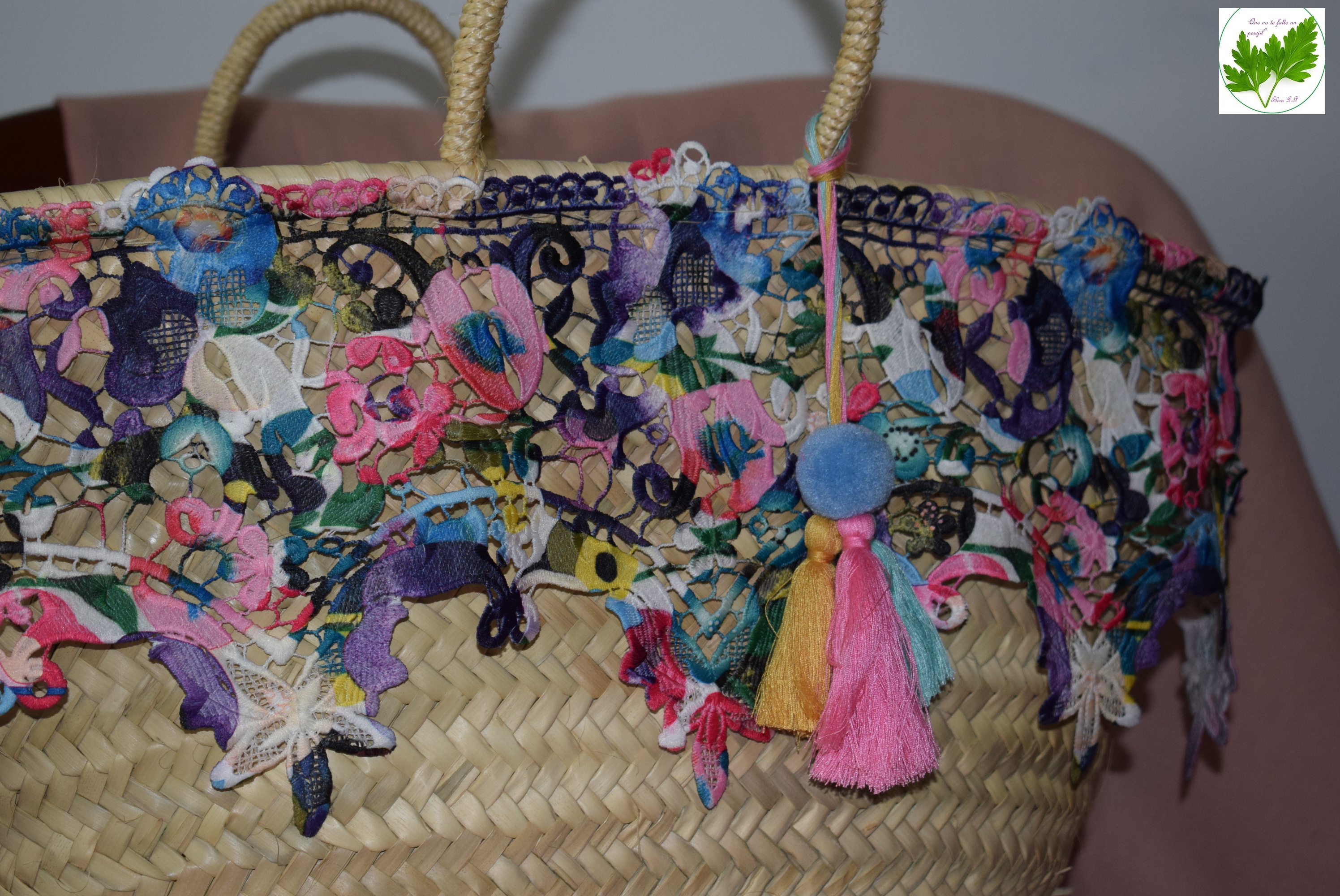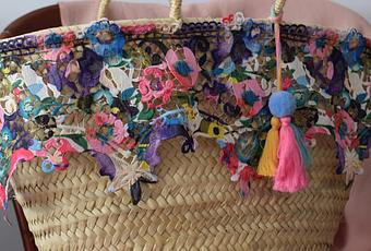Esas tardes hay que esperarlas como se merecen, con ropa fresca y veraniega combinada con los más bonitos complementos. Hoy os quiero enseñar este capazo que he adornado, es un encargo para regalar a una persona muy querida. Quería que fuera un regalo único pensado exclusivamente para ella. Éste ha sido el resultado, espero que la persona que lo va a recibir quede ecantada con él.