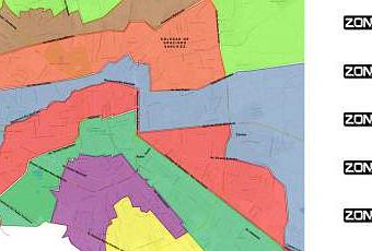La zona azul abarca colonias como Las Piedras, Los Reyes y Quintas de la Hacienda; la zona naranja, Villa Magna, Aviación, Saucito; la zona café, Los Limones, La Constancia, y la zona verde limón contempla colonias como María Cecilia y el Vergel.