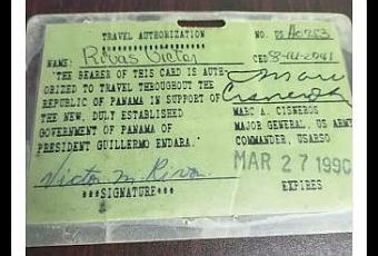 Al ser la República de Panamá un país invadido por el ejército norteamericano acartonado en las bases militares de la Zona del Canal (la primera fue en 1925 a raíz de la Huelga Inquilinaria por el alza de los alquileres de cuatros), las nuevas normas creadas por los norteamericanos, idearon una tarjetas de autorización para conducir automóviles en el territorio nacional autorizadas por el Jefe del Comando Sur el Mayor General Marc Cisneros, quien comandaba los más de 30,000 soldados que actuaron en diversos sectores del país invadido. Esta tarjeta de autorización para conducir permitía al conductor desplazarse en el país y el automóvil requisado para la prevención del trasiego de armas y personal que era solicitado por sus vínculos con las Fuerzas de Defensa (antigua Guardia Nacional) y del gobierno desplazado del Presidente Provisional del Licenciado Francisco Rodríguez. Estás eran expedidas en el Headquarters de Clayton con previo formulario y entrevistas antes de ser expedida para el conductor. Su vigencia de corta duración llegó a su fin a finales de 1990 como soporte de seguridad, hasta cuando fue organizado el gobierno panameño electo y posesionado en la base militar de Clayton en la figura del Licenciado Guillermo Endara Galimany junto a sus vicepresidentes Dr. Ricardo Arias Calderón y Don Guillermo Ford Boyd. Fue un documento inédito en la historia panameña de los años finales del siglo XX. Bibliográfica ConsultadaEstudios para el Panamá Republicano Autores: Celestino Andrés Arauz, Patricia Pizzurno Editorial: Manfer, S.A.Año: 1996Luis J Ceballos M. Investigador Historiográfico Marzo, 2021.