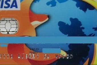 Hace un tiempo ya, banco ("SEV" de Estonia) ofrece a sus clientes la posibilidad de rediseñar su tarjeta de crédito. En este caso de Otto de Voogd eligió el logo de firefox. Esto es llevar Firefox hasta en los bolsillos, ya lo imagino presumiendo con su grupo de amigos geeks