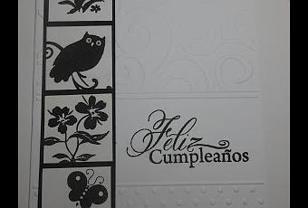 Para la tarjeta utilicé la carpeta de embossing que viene en el kit básico de la Texture Boutique y la frase "Feliz Cumpleaños" con polvos de embossing negro. Los estampados parecen inchies, pero miden un poco más y los estampé con Colorbox negro.