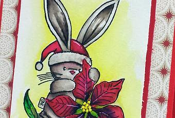 El sello lo compré en Aliexpress y como digo, lo he pintado con mis rotuladores acuarelables Zig sobre papel de acuarela.Luego he aplicado unos brillos con un bolígrafo de gel blanco, unas bolitas de perfect pearls en el centro de la flor y un poco de Glossy accents para la bolita del gorro y la nariz.