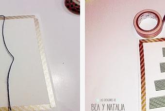 En este caso, el borde de la tarjeta es washi slim dorado. Para el tronco del árbol, un trozo de hilo, que se irá pegando con tiras de washi verde de diferentes tamaños, de menor a mayor. Por último, un poco de washi el la parte más alta, y listo.