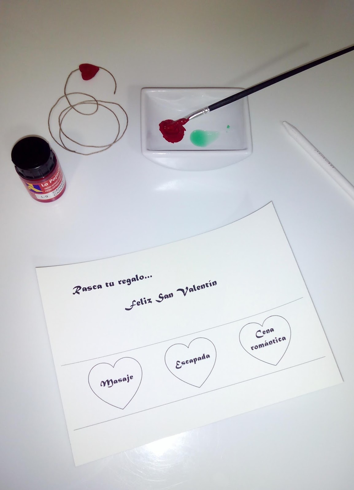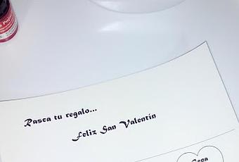 ¿Por qué no dejas que el azar decida por vosotros?Ya verás que sencillo es realizar esta tarjeta tan original...Materiales:- Cartulina (formato A5).- Pintura.- Jabón para lavar los platos- Pincel.- Pintura de cera de color blanco.- Decoración al gusto.Procedimiento:1. Diseña tu propia tarjeta o descarga aquí la que he utilizado yo.