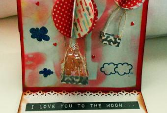 El reto consiste en hacer una tarjeta en la que predomine el amor!! , así que nosotros hemos querido hacer nuestra interpretación, y nos parecía super romántica, la idea de una parejita en globo,en un precioso atardecer.